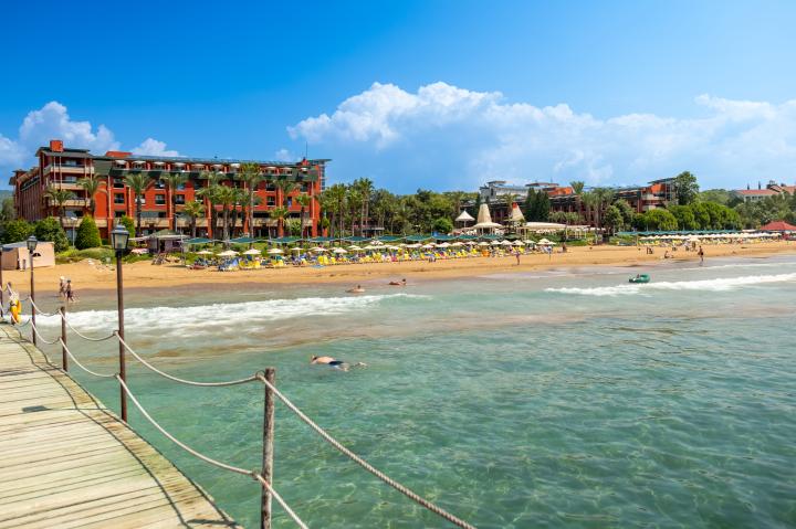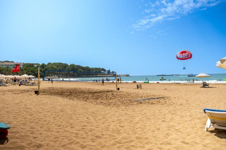 Hotel se nalazi direktno uz vlastitu pješčanu plažu koja nosi Plavu zastavu, međunarodno priznanje za čistoću mora i sigurnost. Gosti mogu besplatno koristiti ležaljke, suncobrane i ručnike. U sklopu hotela nalazi se veliki vanjski bazen i bazen za djecu, a gosti mogu koristiti i aquapark u sklopu kompleksa.