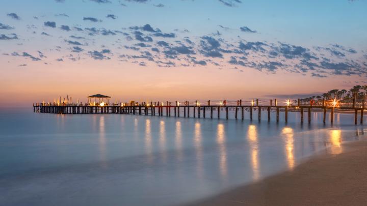 Hotel ima privatnu plažu s ležaljkama, suncobranima i ručnicima uključene u cijenu. Gosti također mogu koristiti vanjske bazene, unutarnji bazen, dječje bazene te vodeni park s toboganima.