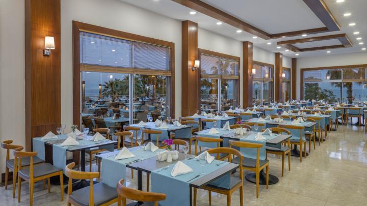 Buffet restoran poslužuje doručak, ručak, večeru i kasne zalogaje. Uz to, dostupni su à la carte restorani raznih kuhinja, pool i beach barovi te slastičarnica. Pisani pregled uključenih sadržaja i vremenskog okvira usluge dobivaju gosti već pri dolasku.