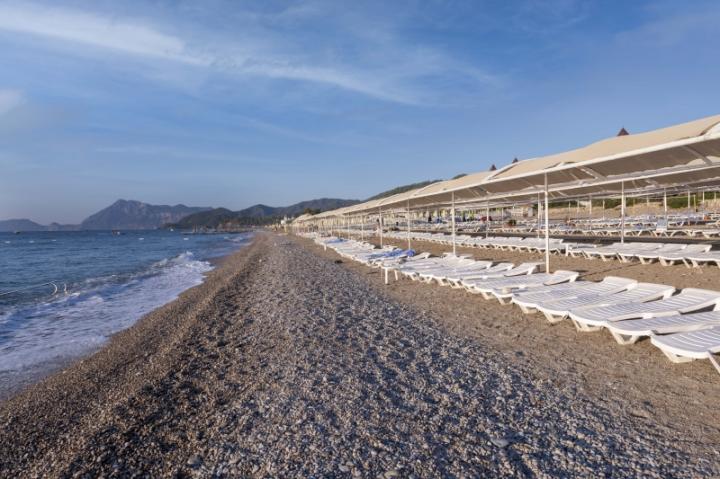 Privatna mješovita šljunčano-pješčana plaža dostupna je gostima s uključenim ležaljkama, suncobranima i ručnicima. Resort ima više vanjskih bazena, dječji bazen i mini aquapark s toboganima. Bazeni su okruženi zelenilom i idealni su za obiteljski odmor.