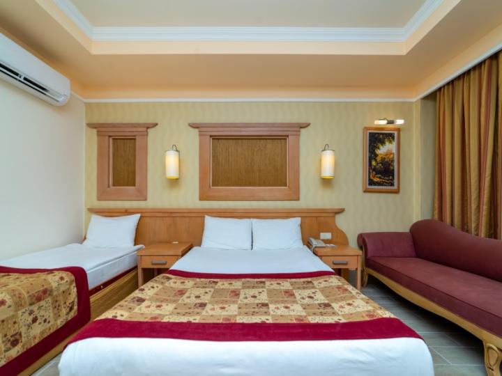 Smještaj obuhvaća standardne sobe, obiteljske sobe i suiteove s balkonom ili terasom, opremljene klima‑uređajem, televizijom, minibarom, sefom, telefonima i kupaonicom. Dizajnirane su za udobnost i elegantan boravak.