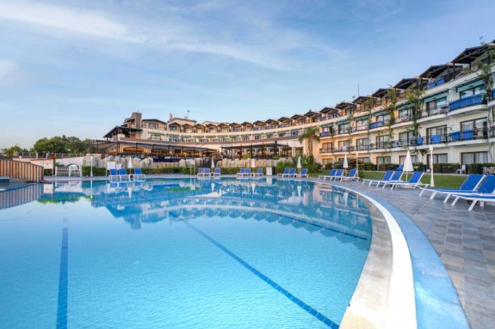 Hotel ima privatnu plažu dugu oko 150 metara, s ležaljkama, suncobranima, ručnicima i drvenim molom uključenim u paket. U resortu se nalaze tri vanjska bazena (jedan s vodenim toboganima), zatvoreni bazen, dječji bazen i bazen za opuštanje.