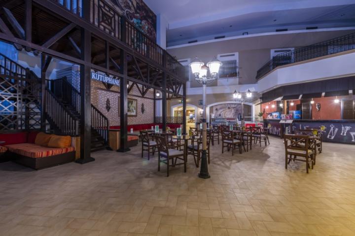 Glavni restoran poslužuje buffet doručak, ručak, večeru i noćnu juhu. Dostupni su à la carte restorani (jedan besplatan po boravku u zip cjeniku), snack bar, patisserie i pool/beach bar. Gosti se na dolasku upoznaju s popisom uključenih obroka i pića; uvozna pića, prodaja u bocama i svježi voćni sokovi su uz doplatu.