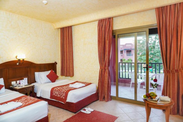 Hotel ima više od 250 soba raspoređenih u niskim zgradama u vrtu. Sobe su klimatizirane i imaju balkon ili terasu, kupaonicu s tušem ili kadom, TV, sef, minibar i sušilo za kosu. Na raspolaganju su standardne i obiteljske sobe.