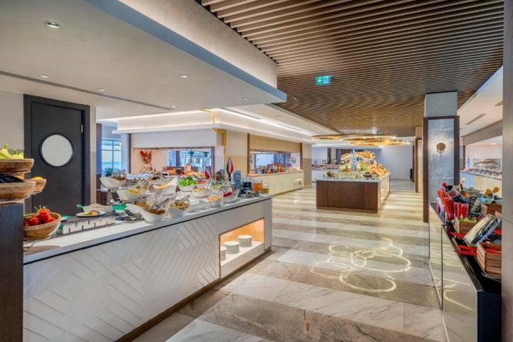 Glavni buffet restoran nudi doručak, ručak, večeru, kasne zalogaje i poslijepodnevnu kavu. Dostupni su i à la carte restorani uz prethodnu rezervaciju. Usluga uključuje lokalna alkoholna i bezalkoholna pića, a detalji o uključenim pićima i obrocima su gledačima dostupni po dolasku.