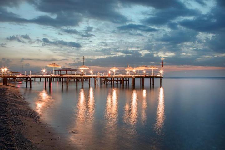 Smješten je neposredno uz more s privatnom plažom; u okolini se nalaze trgovine, restorani, plaža, šetnice i lokalne atrakcije. Grad Kemer udaljen je nekoliko kilometara, dostupnost prevoza je dobra.