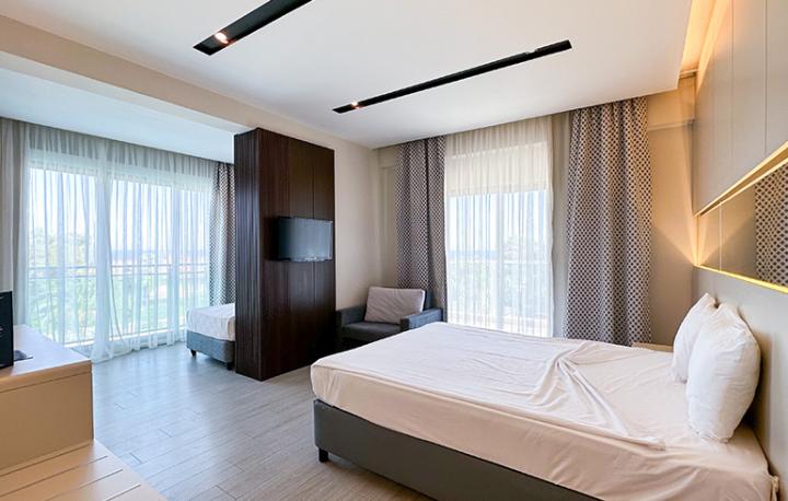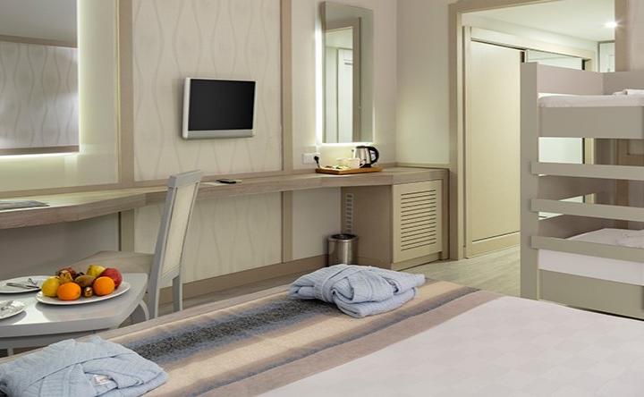 Sobe su klimatizirane, opremljene balkonom ili terasom, sefom, mini barom, TV-om, telefonom i kupaonicom s tušem ili kadom. Dostupne su standardne i family sobe.