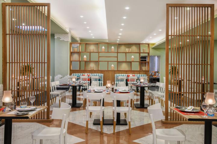 U sklopu hotela nalaze se glavni buffet restoran Oasis koji nudi doručak, ručak i večeru s bogatim izborom jela, à la carte restorani Olivo s talijanskim specijalitetima i Fayrouz s arapskom i egipatskom kuhinjom, te beach i snack restorani uz more. Dostupno je više barova, uključujući lobby bar i pool barove.