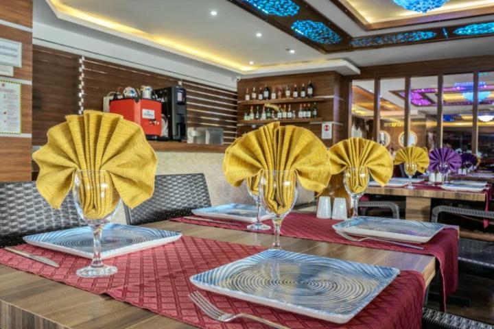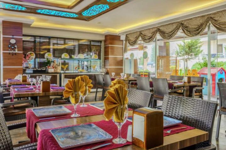 Glavni restoran nudi buffet doručak i večeru. U baru su dostupna pića i hladni napici tijekom dana. Strana alkoholna pića, svježe cijeđeni sokovi i turska kava dostupni su uz doplatu.