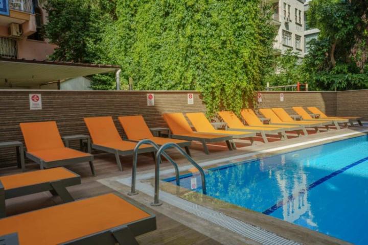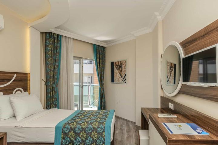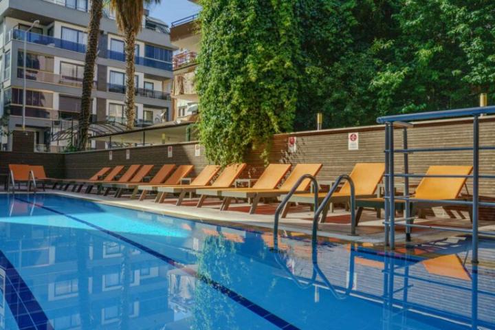 Hotel se nalazi odmah pored Kleopatra plaže sa zlatnim pijeskom; ležaljke i suncobrani na plaži dostupni su uz doplatu. U sklopu objekta vanjski bazen i dječji bazen. Plaža je često hvaljena kao jedna od najljepših u Alanyi.