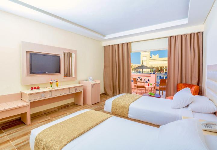 Nalazi se u predjelu Villages Road, u blizini brojnih atrakcija: Grand Aquarium udaljen samo nekoliko minuta, Sand City, nekoliko aquaparkova i javnih plaža. Zračna luka Hurghada je udaljena približno 10 – 20 minuta vožnje.