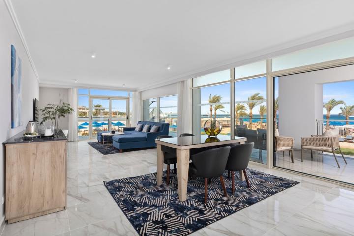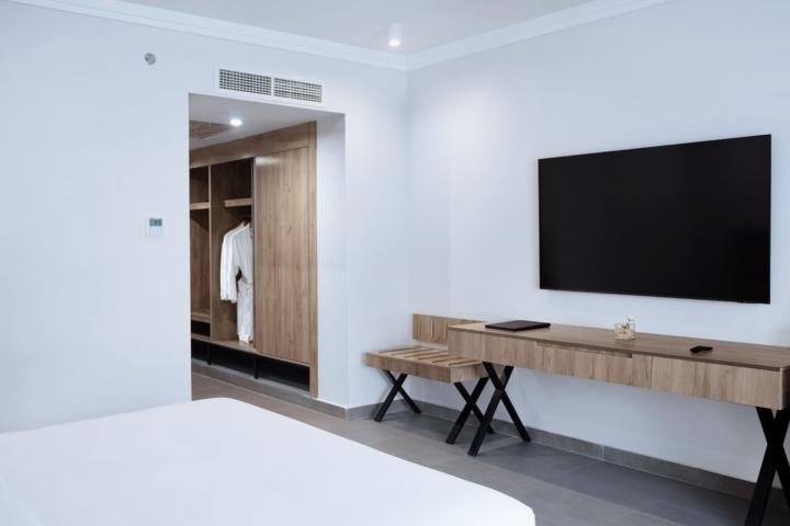 Sve smještajne jedinice opremljene su klima-uređajem, balkonima ili terasama, televizorima od 65 inča sa satelitskim programima, minibarom, sefom, aparatom za kavu/čaj, sušilom za kosu i kupaonskim sadržajima. Na zahtjev je dostupan i pribor za glačanje. Sobe nude pogled na bazen ili more, a interijer je uređen u mirnim tonovima radi opuštajuće atmosfere.