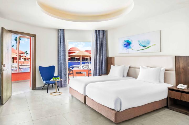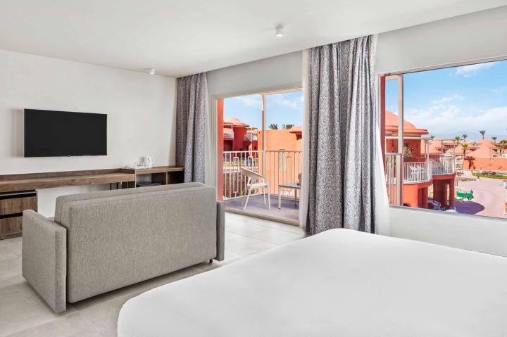 Hotel ne leži direktno na plaži, ali gostima je dostupan besplatan shuttle prijevoz do privatne plaže s ležaljkama, suncobranima i ručnicima. Unutar resorta nalaze se brojni vanjski bazeni, uključujući dječje bazene i aquapark sa toboganima. Pojedini sadržaji dostupni su uz nadoplatu.